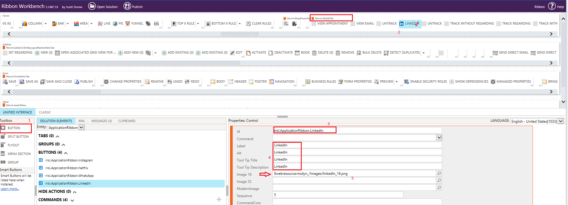 Note: Without this step, Ribbon Workbench will not show the Global Tab for customization.