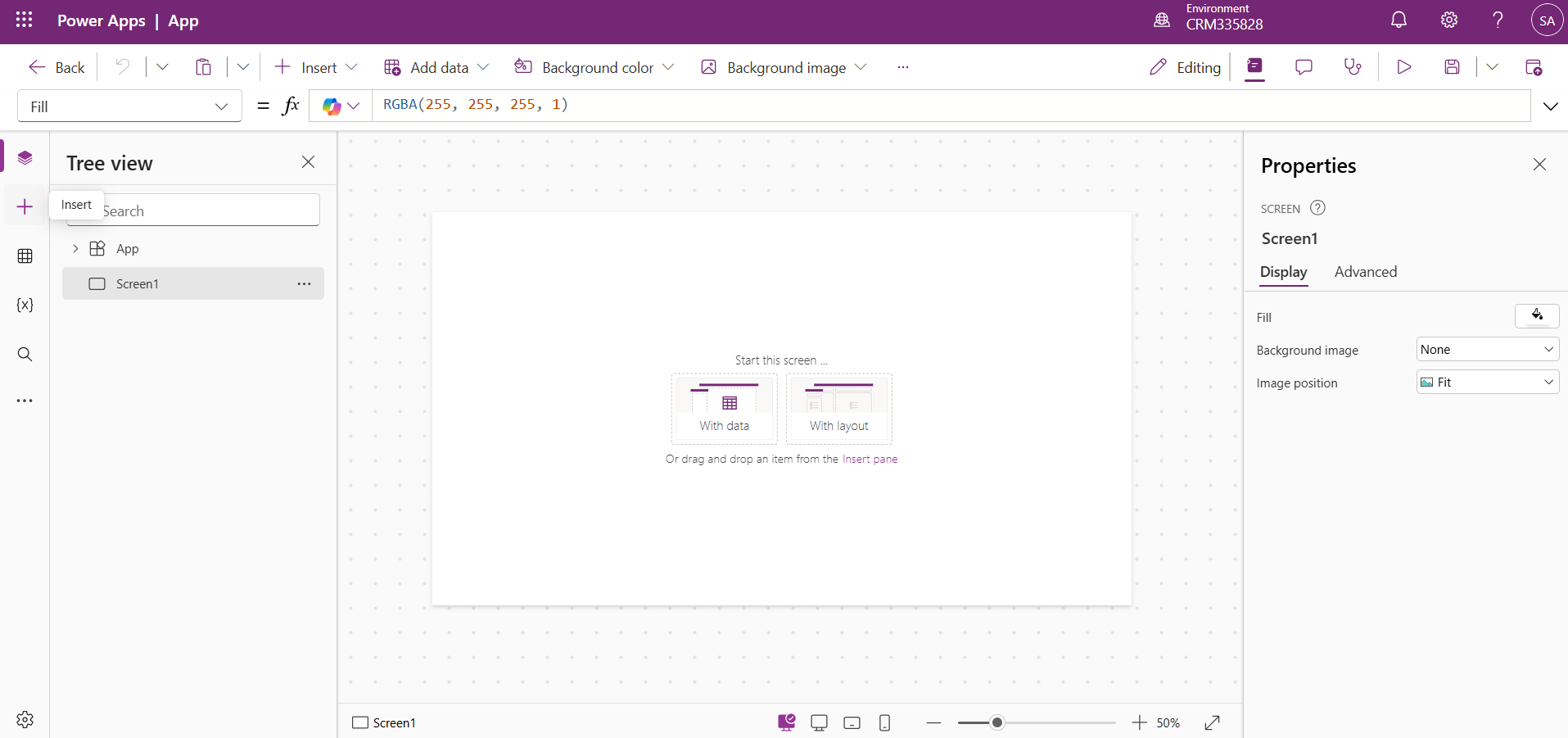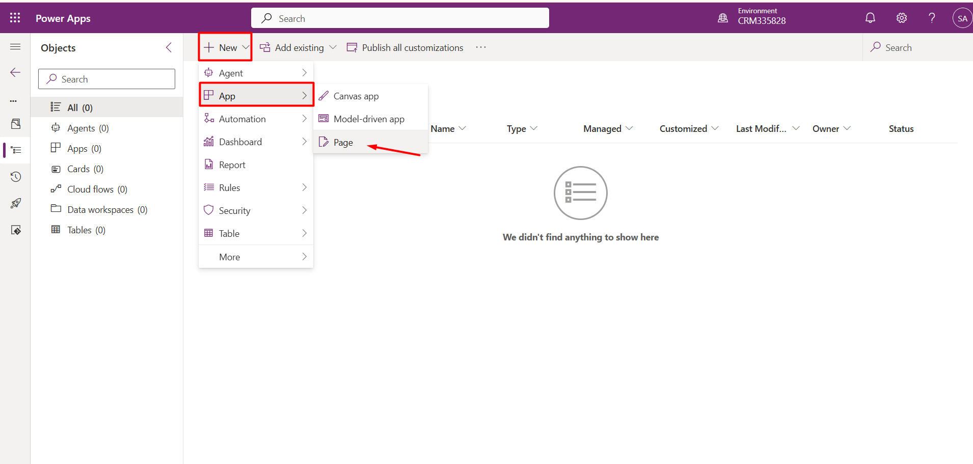 Open <Your App> in the Power Apps editor, click on the “+ Add Page” button and select Custom Page.