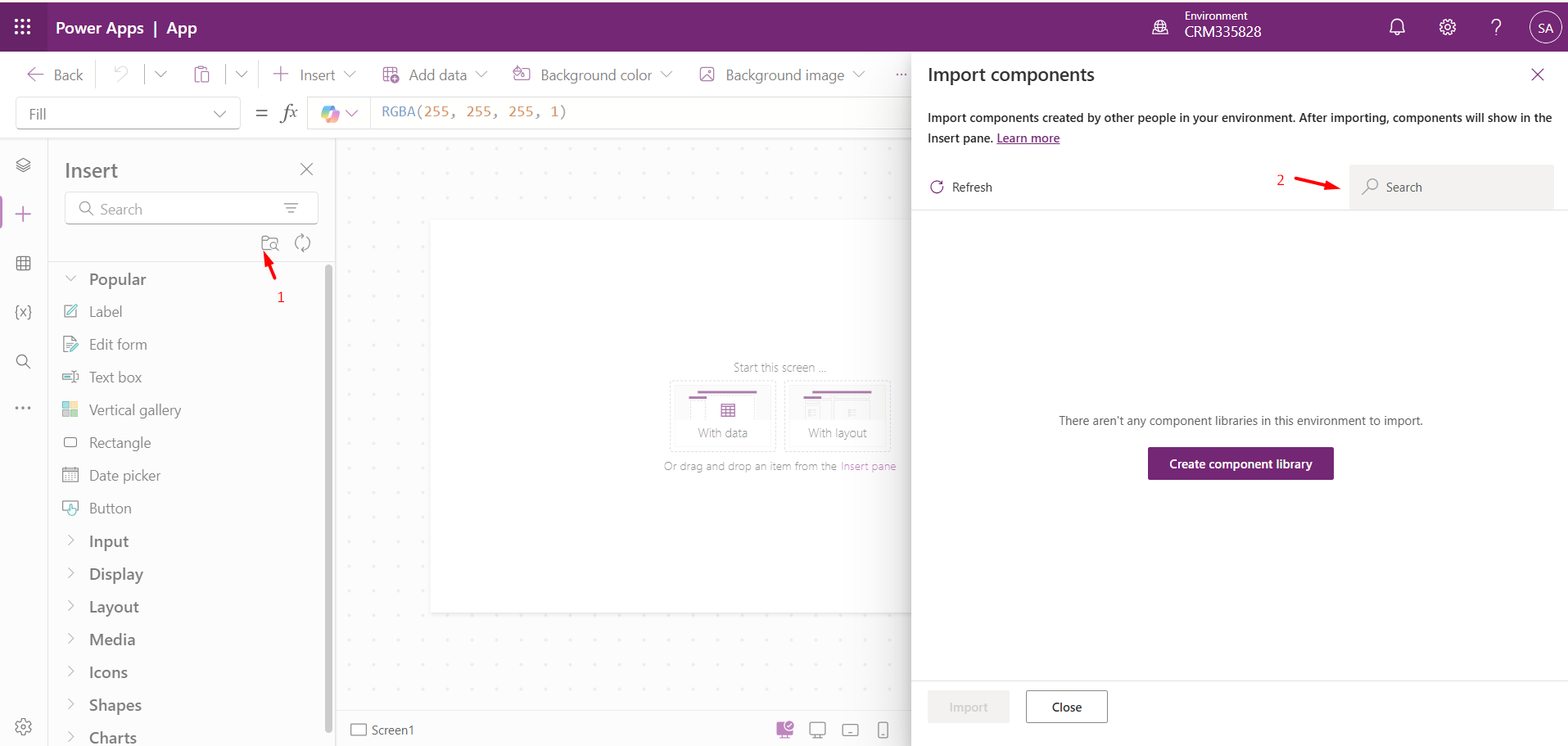 Next, click on the Get more components icon from the sitemap. An Insert Pane will appear, allowing us to add the PCF Control.